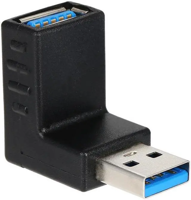 Specification:Material: Cable: 24AWG tinned copper core Interface: nickel plated shell + gold plated contacts Shell: environmentally PVC injection Color: BlackConnector 1: USB 3.0 Type A MaleConnector 2: USB 3.0 Type A FemaleQuality inspection: Twice electrical testItem size: 2.8 * 1.8 * 1cm / 1.1 * 0.7 * 0.4in(L * W * H)Item weight: Approx. 12g / 0.4ozPackage size: 5 * 5 * 3cm / 2 * 2 * 1.2in(L * W * H)Package weight: 14g / 0.5oz The right angle USB 3.0 Type A male to female adapter is designed to change interface type and direction of USB devices when needed, it can also be used to extend exsiting cables. It reduces the stress on your devices' USB ports and avoids excessive bending of fixed USB cables on external USB docking station or hard drive. It is indispensable for changing the USB cables' direction & connecting them in narrow spaces such as an airline seat. USB 3.0 boasts high speed transfer rates up to 5 Gbps without reducing the performance of existing cables. Gold plated contacts provide safe and stable transmission, integrated non-toxic fine raw materials ensure user and environmentally friendly. Features: Connector 1: Type-A male, connector 2: Type-A female. The female terminal point upward. Blazing fast USB 3.0 transfer rates up to 5Gbps, backward compatible with USB 2.0 480Mbps and USB 1.1. Instantly convert existing cables to your need and easily change the direction of USB devices by 90 degrees on any occassion. Gold plated contacts ensure superior touch and stable data transfer, protecting data from damaging. Sturdy exquisite quality PVC injection shell, enduring wear, scratch, high & low temperature, anti-impact, firm and reliable. Compact size, elegant in shape, lightweight, easily to be carried anywhere. Specification: Material: Cable: 24AWG tinned copper core Interface: nickel plated shell + gold plated contacts Shell: environmentally PVC injection Color: Black Connector 1: USB 3.0 Type A Male Connector 2: USB 3.0 Type A Female Quality inspection: Twice electrical test Item size: 2.8 * 1.8 * 1cm / 1.1 * 0.7 * 0.4in(L * W * H) Item weight: Approx. 12g / 0.4oz Package size: 5 * 5 * 3cm / 2 * 2 * 1.2in(L * W * H) Package weight: 14g / 0.5oz Package list: 1 * 90 Degree Angle USB 3.0 Type A Male to Female Adapter