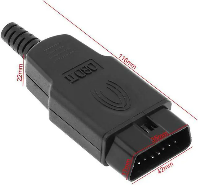OBD-II DIY 16Pin Male Extension Opening Cable Car Diagnostic Interface Connector PLug with SR Shell and Screw Features: - Allows The Device To Be Connected. -Apply To OBD OBD-II 16pin Male Extension Opening Cable Car Diagnostic Interface Connector. -Contains Plug, SR, Shell, Screw. Type: Connector PLug Material: Plastic Color: Black Apply: 16 Pin Screw Quantity: 4pcs Package Weight : 34.0 G / 1.20 Ounces Package Dimensions (L*W*H) : 120*40*20 MM / 4.72*1.57*0.79 Inches Retail Packaging: No, No Packing