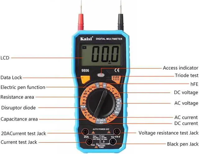 Kaisi 9806 Professional LCD Digital Multimeter Electrical Handheld Digital Multimeter Tester With Number Lock