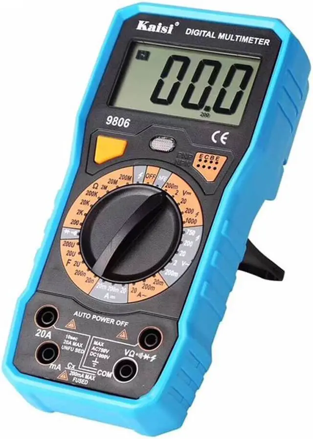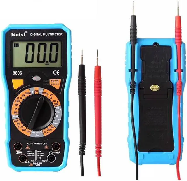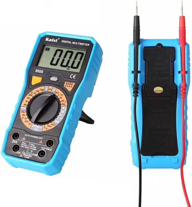 Function Features: High SecurityThe safety performance of precise PC board is meet the standard of security testing. Large LCD ScreenKaisi Digital Multimeter has a large screen, the maximum number display is 1999, and also provides number-lock function. Comfortable Hand FeelingDriving plate is accurate and easy to control, the number on it is clear. Full ProtectionFull protection for preventing burn-in, such as automatic shutdown function, can effectively protect the machine from error operation. Adjustable HolderThe holder of the multimeter can be adjusted to a suitable angle for accuracy and convenience of reading.