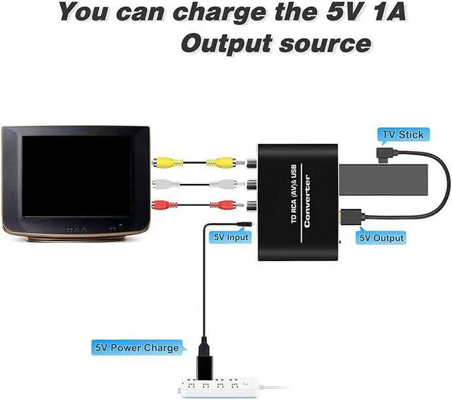 5V power output: This HDMI-compatible to RCA converter has 5V usb power output power, which can be used to power up the 1080P HDMI-compatible TV stick. 5. It has an alloy shell, moderate size, no driver installation, plug and play, portable and flexible. 6. It can work normally on TV Stick (such as Fire Stick, PC, laptop, for Xbox, HDTV, DVD). But it does not support mobile phones.