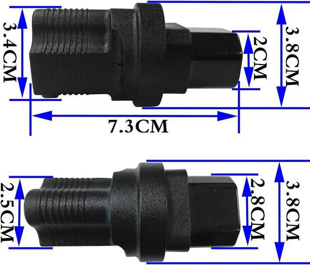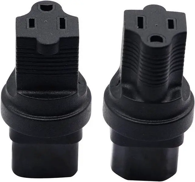 Size:(7.3CM X 3.8CM) Color: Black Package Quantity:(2 pack) Material: Plastic & Metal Features:3 prong USA C14 to NEMA 5-15R Plug Power Adapter