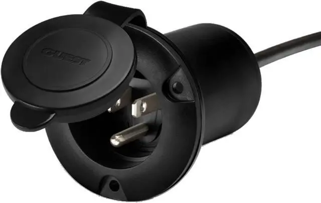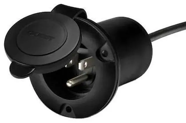Black AC Universal Plug Holder is designed for all standard 120V AC plugs,Plug clamp insert included—converts plug holder to an AC inlet for battery chargers,No cutting, stripping, or rewiring of AC power cord,Watertight and UV resistant cover. Stainless steel mounting screws included,Easy to reach safe AC power cord connections,