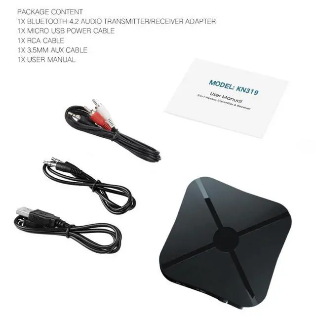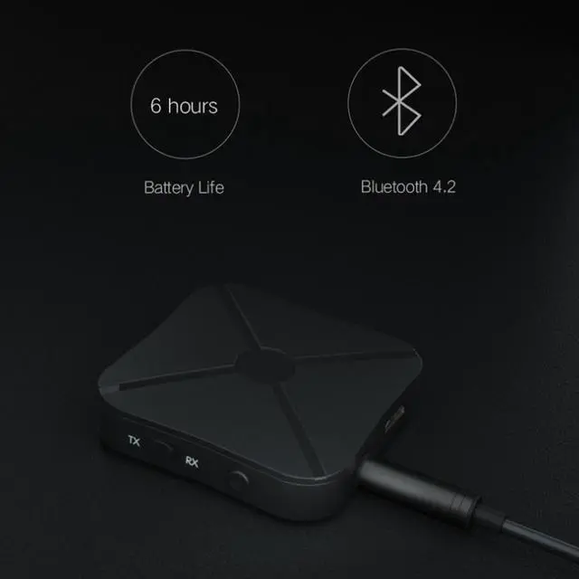 Transmitter mode: wirelessly transmit audio from a non-Bluetooth TV, home stereo system or CD player to a Bluetooth headset or speaker
