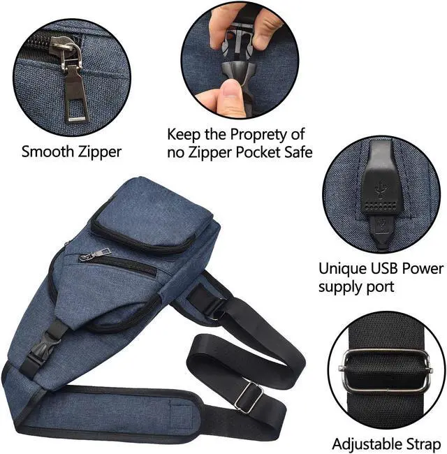 Lightweight &Material: High quality oxford fabric material, metal zipper, premium buckle, Polyester lining. It's a very casual and stylish crossbody purse sling shoulder bagFeatures: USB charging port, anti-theft zipper, safe pocket. Fashion designed with one right / left easily switchable and adjustable padded strap make you comfortStructure