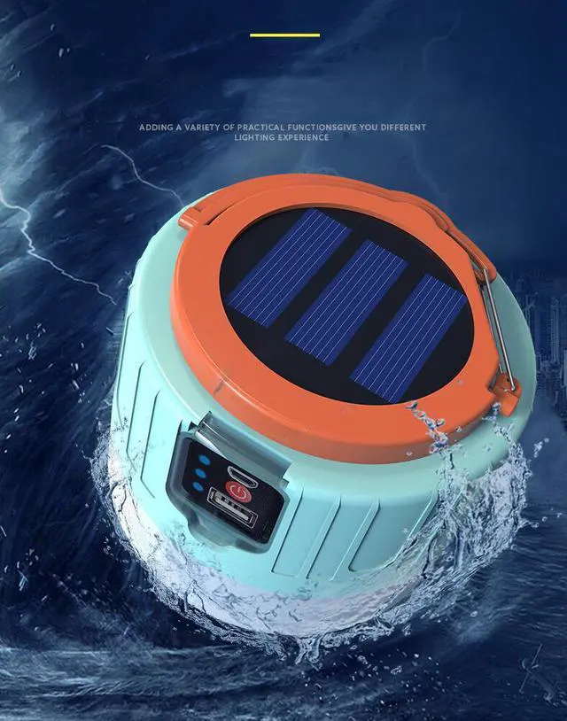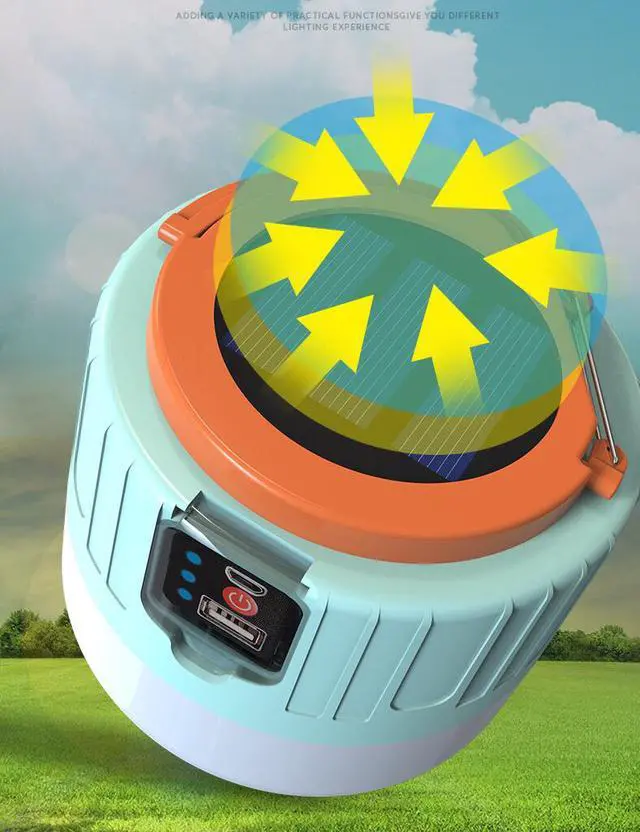 Features: • Solar Powered • Rainproof and dustproof IPx4 • Powerful 300-1200 lumen LED • 3 Light Modes, including Emergency • USB input and output ports • Stable base and compact design • Loop handle with clip for easy carry and hanging