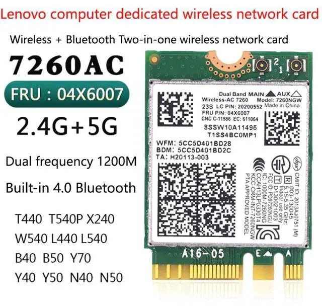 for Lenovo T440 X240 Y40 Y70 Y50 7260AC Wireless Network Card 4.0 Bluetooth 04X6007