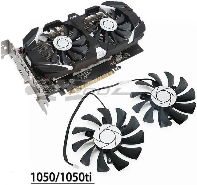 Fan diameter: 75mm Hole distance: 40mm For MSI GTX 1050ti 1050 soaring wind GTX 1650 graphics card cooling fan Fan Model; HA8010H12F-Z The graphics card is a rendering, only fans are sold
