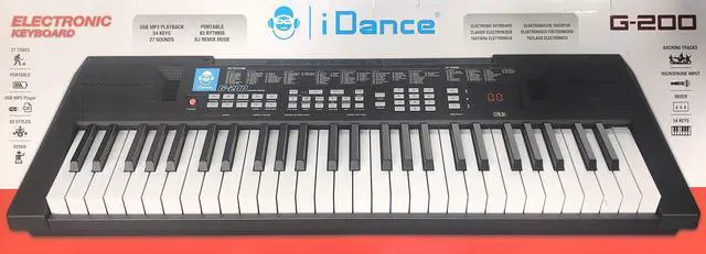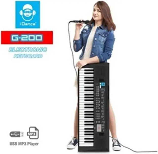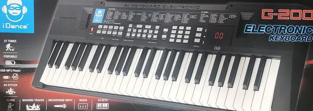 54 Keys Portable Electronic Keyboard - Built-in Speakers with USB-MP3 Player and Remix Function, 27 Tones and 83 Rhythms, Digital Display for Tones/Styles & DC9V/Earphone/Mic/USB Jacks - iDance G-200