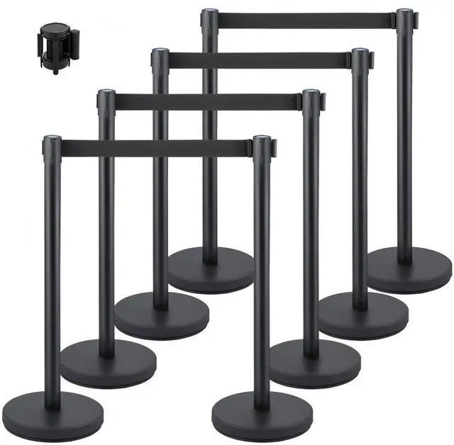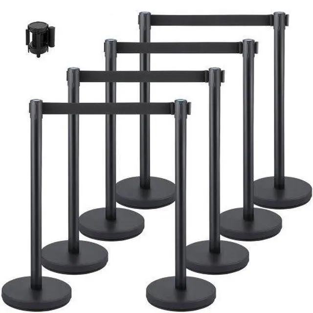 Vevor 8 Pcs Crowd Control Barrier Stanchion Posts Queue Pole Retractable Belt, Steel & Iron Material, Retractable Belt, 4-Way Connection, Steady Base, Easy to Assemble, Widely Used, Belt