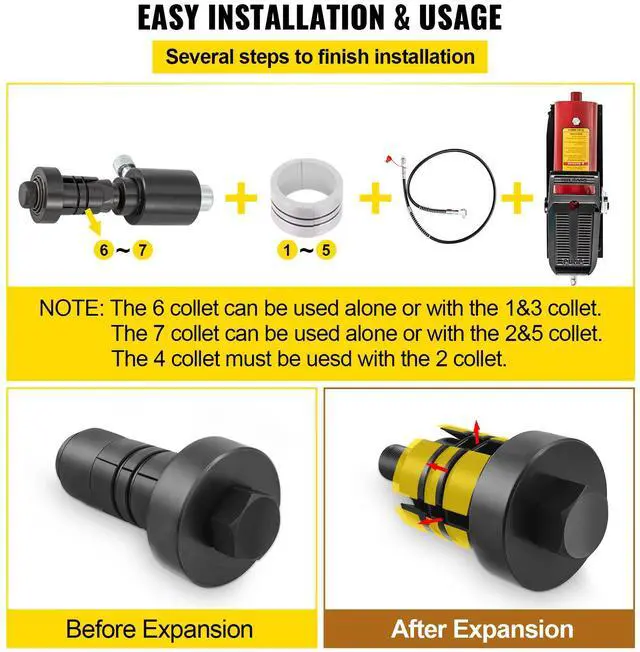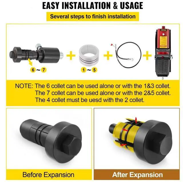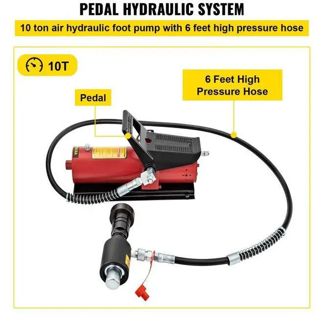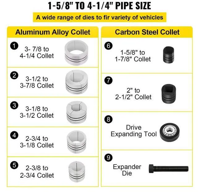 VEVOR Hydraulic Exhaust Pipe Expander, 1-5/8" to 4-1/4" Size, 10 T Pedal Pump Included with 4 Dies, 2 Storage Cases for Copper Aluminum Tubes in Car Repairing, 1-5/8" to 4-1/4" Size Available, 10 Ton Hydraulic System, Easy Operation, High-quality Material, Painted Surface, Compact Case, Expander