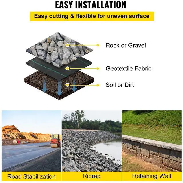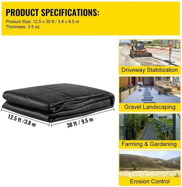 VEVOR Geotextile Fabric, 12.5 x 30 ft 3.5 oz Woven PP Driveway Drain Cloth w/ 600lbs Tensile Strength, Heavy Duty Underlayment for Soil Stabilization, Landscaping, Weed Barrier, 12.5FT 30FT- 3.5OZ, Black, Large Geotextile Driveway Fabric, Heavy-Duty Woven PP Material, Excellent Water Permeability, Ground Stabilization, Weed Barrier For Landscaping, Versatile Uses,