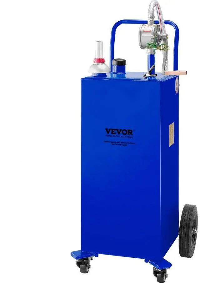 VEVOR 30 Gallon Fuel Caddy, Gas Storage Tank & 4 Wheels, with Manuel Transfer Pump, Gasoline Diesel Fuel Container for Cars, Lawn Mowers, ATVs, Boats, More, Blue, Large 30 Gallon Fuel Tank, Rotary Manuel Pump, Designed just for you, High-Strength Steel Tank, Secure & Efficient to Fill, Wide Application Use,