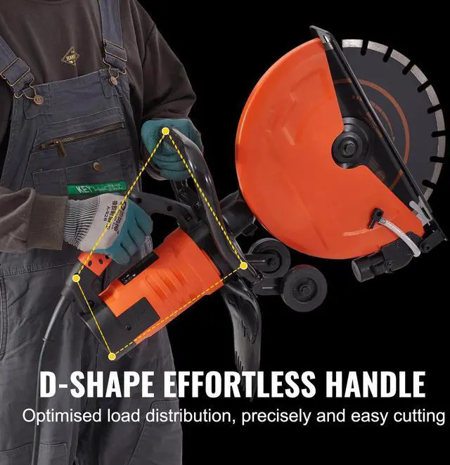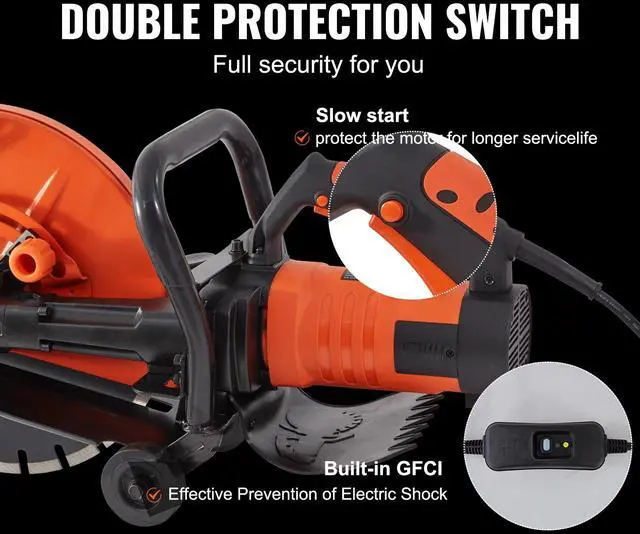 VEVOR Electric Concrete Saw, 14 in Circular Saw Cutter with 5 in Cutting Depth, Wet/Dry Disk Saw Cutter Includes Water Line, Pump and Blade, for Stone, Brick, Porcelain, Concrete, 3200W/15A Motor, A Range of Uses, Unstoppable Protection, Ergonomic Handle, Slow Activation, Clean Wet Cutting, 5 in Cutting