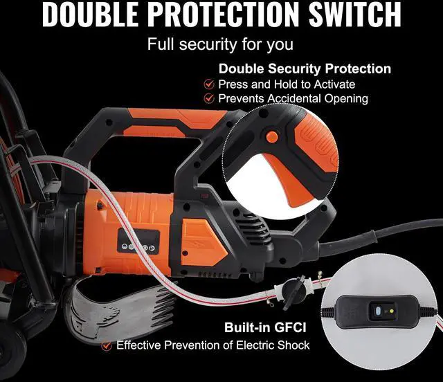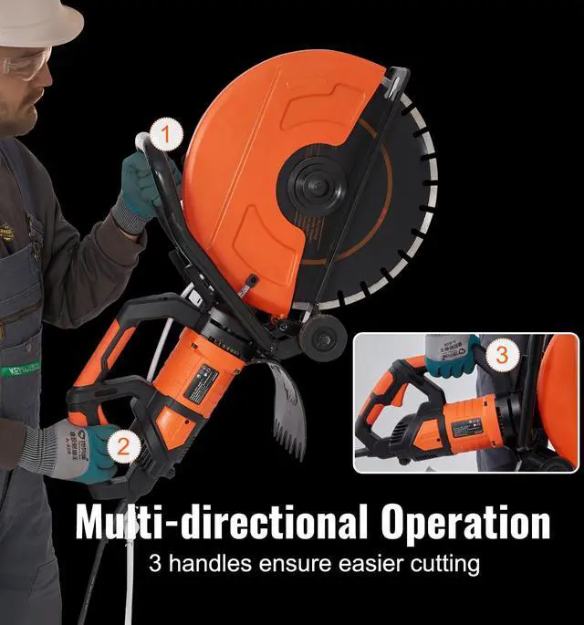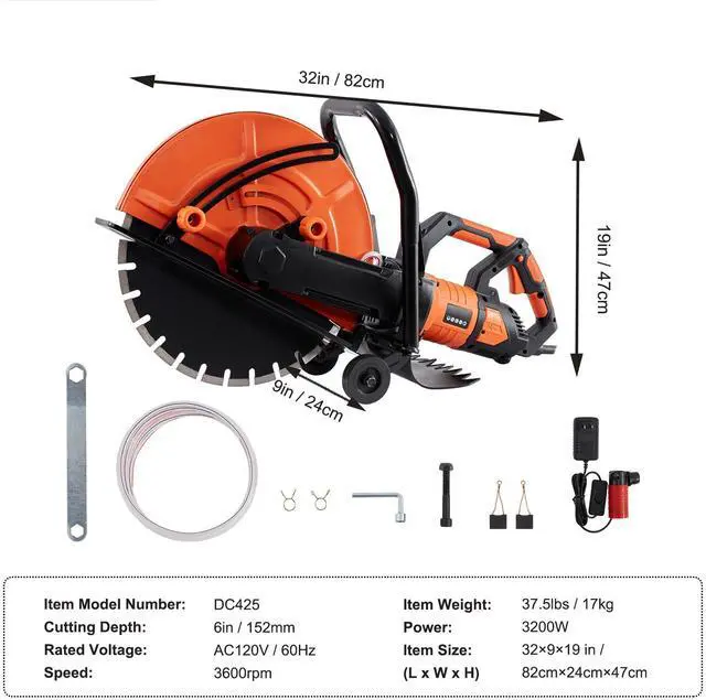 VEVOR Electric Concrete Saw, 16 in, 3200 W 15 A Motor Circular Saw Cutter with Max. 6 in Adjustable Cutting Depth, Wet Disk Saw Cutter Includes Water Line, Pump and Blade, for Stone, Brick, A Range of Uses, Unstoppable Protection, Ergonomic Handle, Slow Activation, Clean Wet Cutting, 6 in Cutting