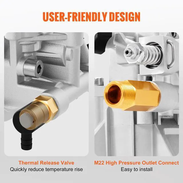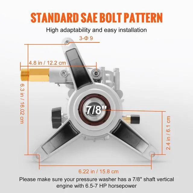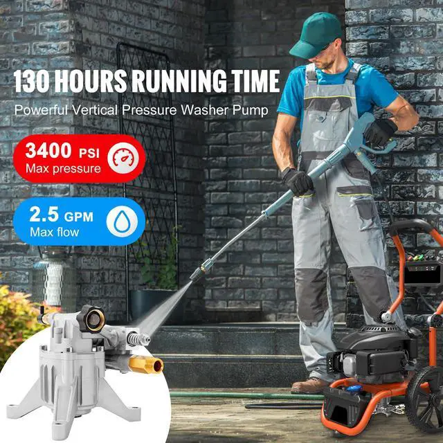 VEVOR Pressure Washer Pump, 7/8" Shaft Vertical, 3400 PSI, 2.5 GPM, Replacement Power Washer Pumps Kit, Parts Washer Pump, Compatible with Honda, Simpson, RYOBI, Briggs & Stratton, Subaru, Craftsman, Broad Compatibility, Strengthened Plunger Hardness, Your Security Comes First, Widely Applicable, No Maintenance Required, Operate with Ease,
