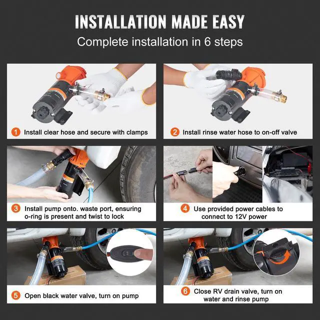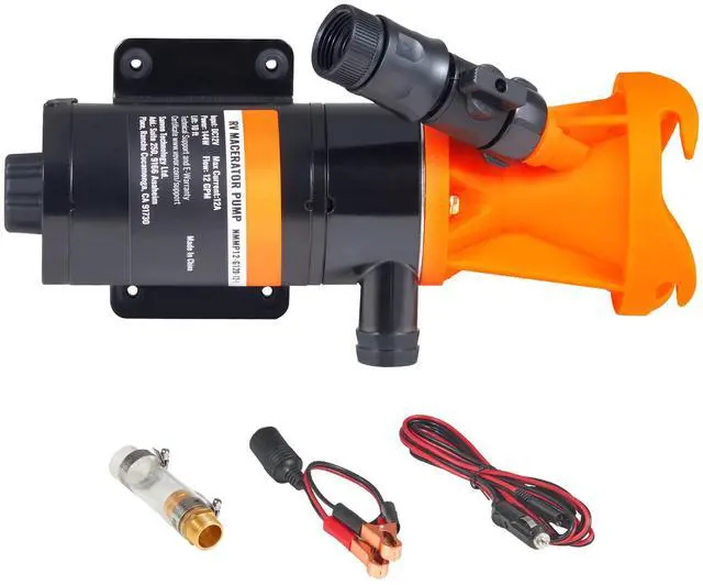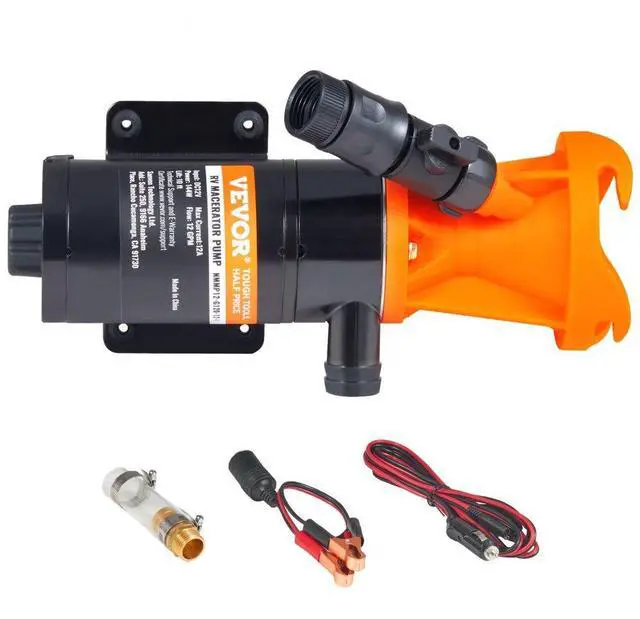 VEVOR RV Portable Macerator Pump, 12V, 12GMP Quick Release RV Waste Pump, RV Sewage Sewer Pump with Detachable Quick Connection Valve Metal Hose Clamp Power Cord, for RV Boat Marine Motorhome Camper, Long-Distance Drainage, No More Clogging Hassle, Automatic Cleaning, Powered by Vehicle Battery, Easy Operation, Wide Application,