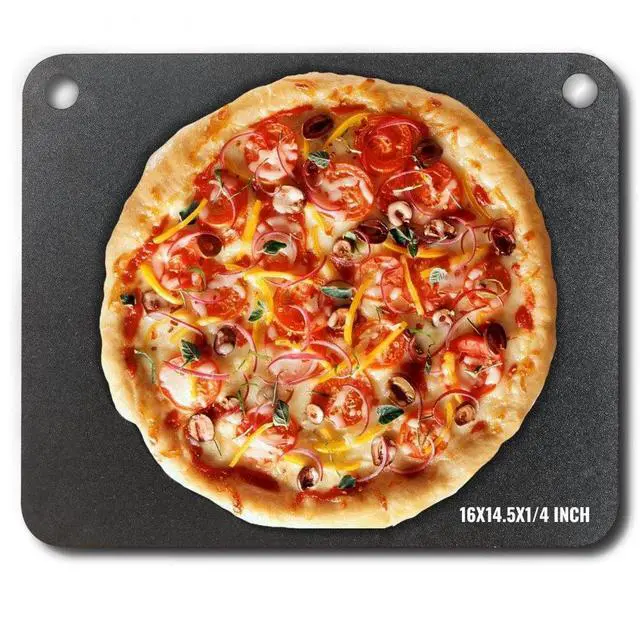 VEVOR Pizza Steel, 16" x 14.5" x 1/4" Pizza Steel Plate for Oven, Pre-Seasoned Carbon Steel Pizza Baking Stone with 20X Higher Conductivity, Heavy Duty Pizza Pan for Outdoor Grill, Indoor Oven, Even Baking, Oxidation Treatment, Exceptional Heat Efficiency, Wide Applications, Sturdy to Use, Easy to Move,