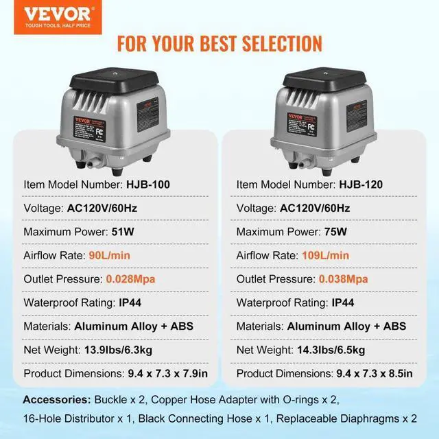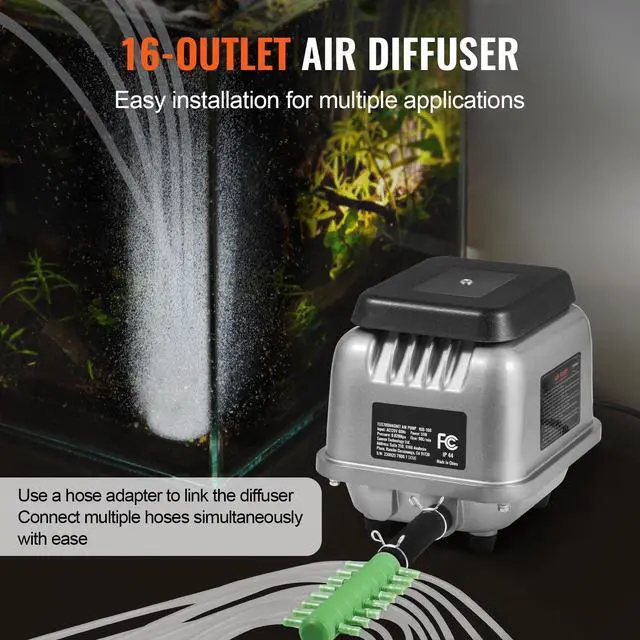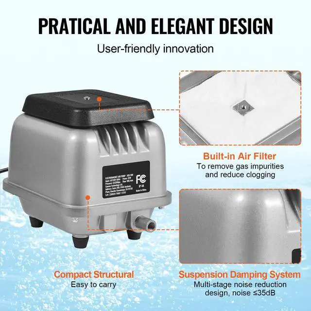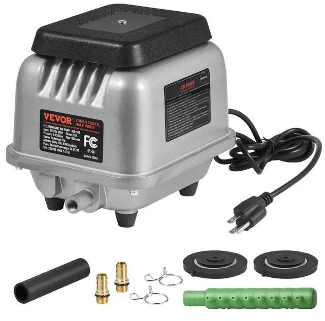 VEVOR Linear Air Pump, 90L/Min Air Flow Septic Aerator Pump, Aeration System for 1/4 Acre 10 FT Deep Ponds, Water Gardens, Waste Treatment, Septic Tanks, Aquariums, Seafood Restaurants, Fish Farms, Powerful Performance, Robust High Flow Design, Effortless Installation and Operation, Smart and Practical Design, Versatile Applications, Compact