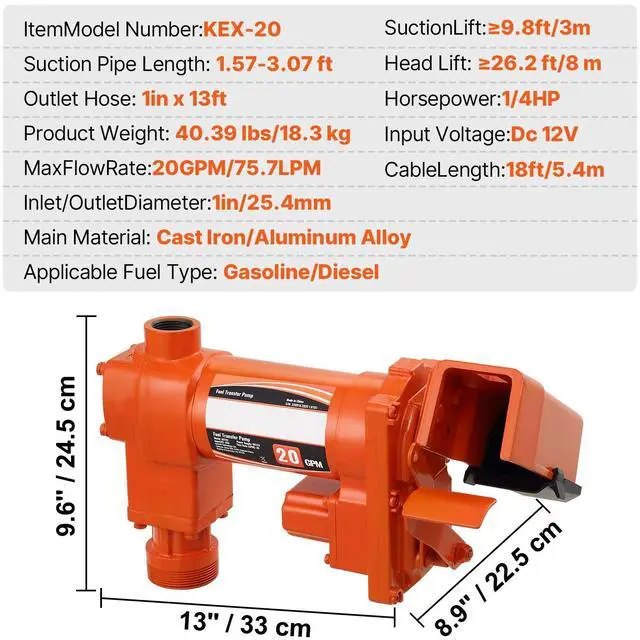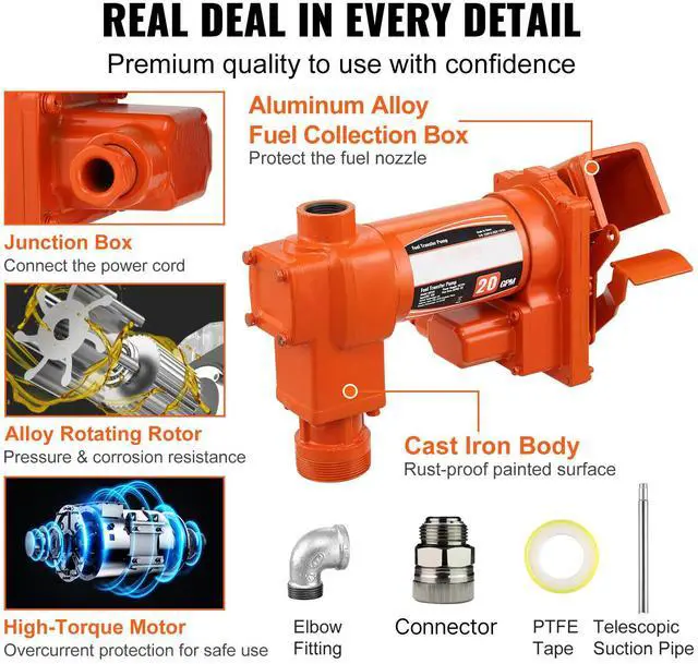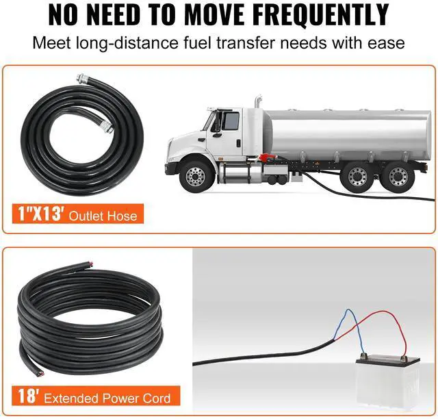 VEVOR Fuel Transfer Pump, 12V DC 20 GPM 1/4 HP, Gasoline Extractor Pump with Automatic Nozzle, Discharge Hose & Suction Pipe for Gasoline, Diesel, Kerosene, Ethanol & Methanol Blends, and Biodiesel, Supercharged Fueling, Automatic Fuel Nozzle, Drip-Defying Design, Rust-proof Telescopic Suction Pipe, Fuel Diversity, Universal Fit, Suction