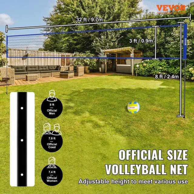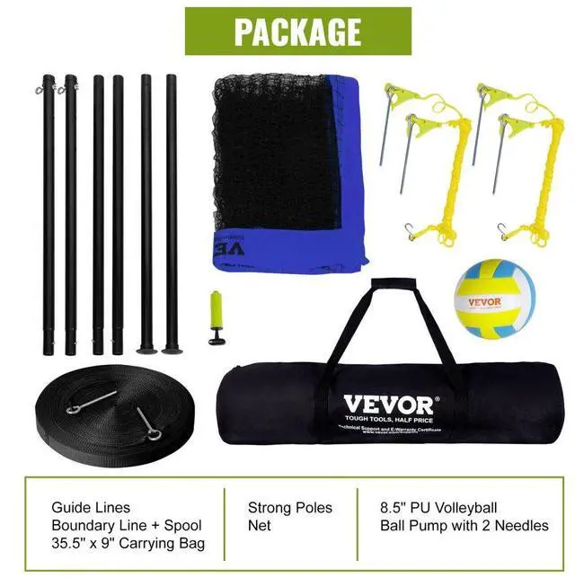 VEVOR Outdoor Portable Volleyball Net System, Adjustable Height Steel Poles, Professional Volleyball Set with PVC Volleyball, Pump, Carrying Bag, Heavy Duty Volleyball Net for Backyard, Beach, Lawn, Versatile Height Adjustment, Sturdy 21-Ply PE Net, Reinforced Poles for Enhanced Stability, Effortless Assembly & Portability, Optical Boundary Line, Unrestricted Enjoyment of Sports, Item