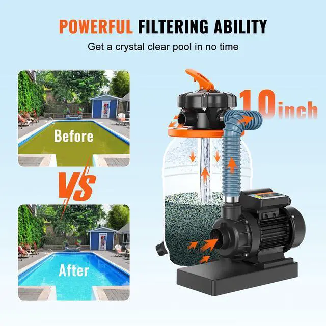 VEVOR Sand Filter Pump for Above Ground Pools, 10-inch, 1585 GPH, 0.33 HP Swimming Pool Pumps System & Filters Combo Set with 5-Way Multi-Port Valve & Pressure Gauge, for Domestic and Commercial Pools, Your Pool Cleaning Assistant, High Efficiency, Powerful Motor, All-in-One Versatility, Effortless Installation, High-Performance Materials, Maximum