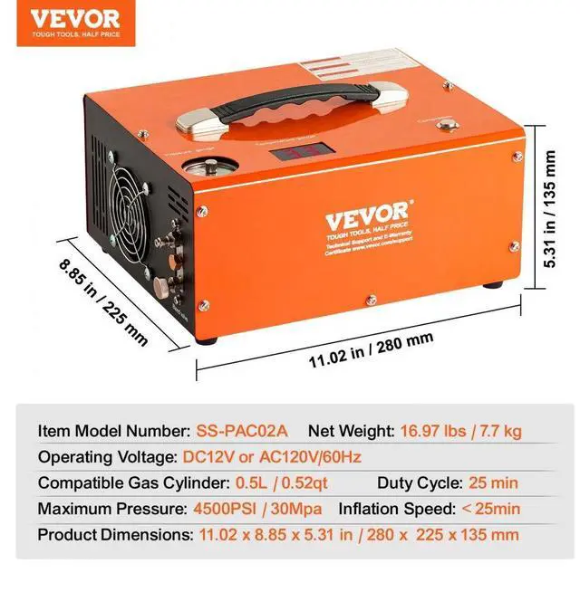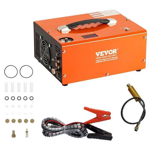 VEVOR PCP Air Compressor, 4500PSI Portable PCP Compressor with Built-in Converter, Auto-Stop, DC12V/AC120V & Oil & Water-Free Compressor Pump, Real-Time Pressure Control, Upgraded Cooling, Easy Portability, One-Click Operation, Safety First, Comprehensive Accessory Kit, Inflation