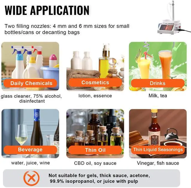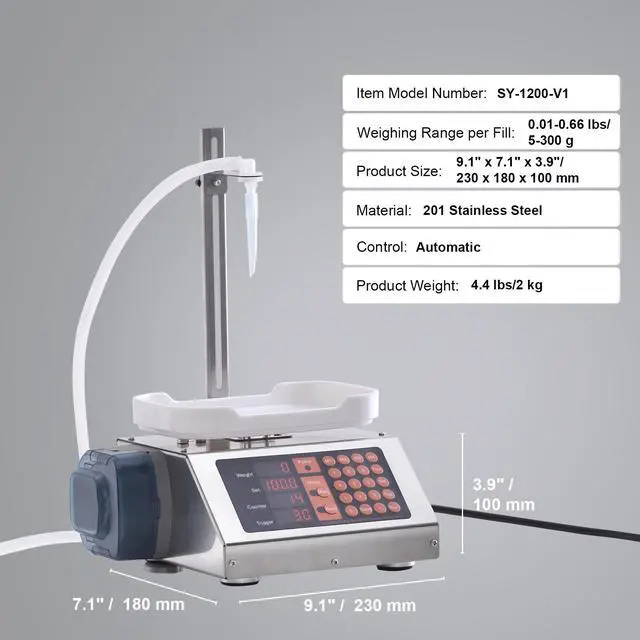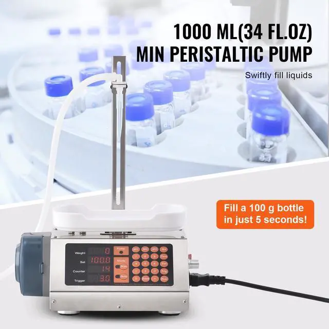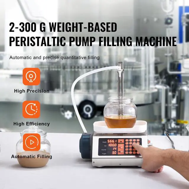 VEVOR Liquid Filling Machine, 5-300 g Weighing Capacity, Automatic Bottle Filler Machine, Bottling Machine Peristaltic Pump Digital Control for Milk, Water, Wine, Beverage, Soy Sauce (Single Nozzle), Liquid Filling Made Easy, Intelligent Automation Filling, Hygienic Liquid Transfer, Built to Last, Effortless Operation, Versatile