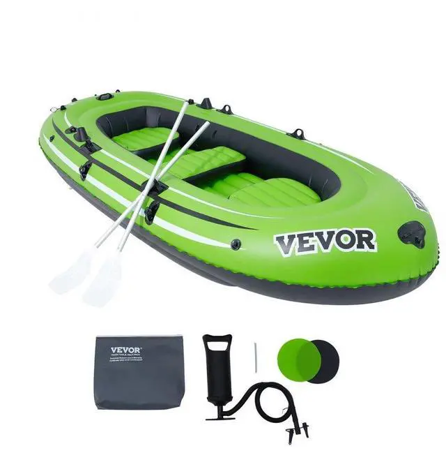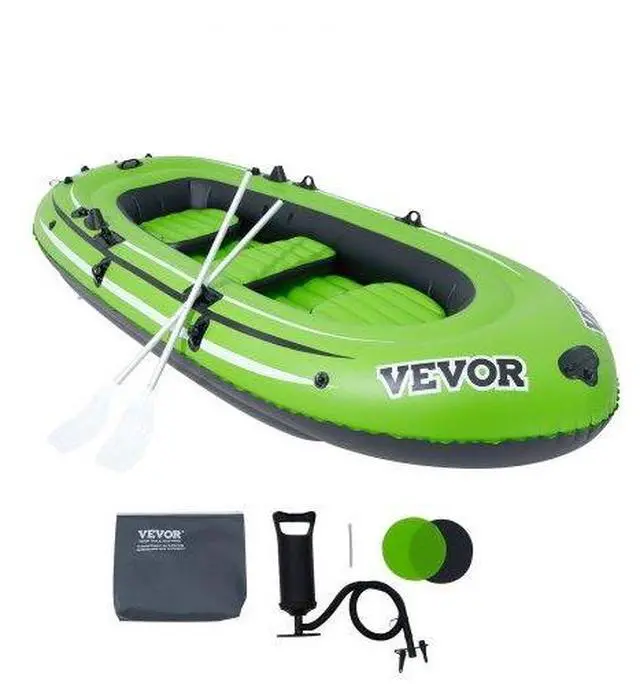 VEVOR Inflatable Boat, 3-Person Inflatable Fishing Boat, Strong PVC Portable Boat Raft Kayak, 45.6" Aluminum Oars, High-Output Pump, Fishing Rod Holders, and 2 Seats, 1100 lb Capacity for Adults, Kids, Thickened PVC Inflatable Boat, Spacious and Comfortable, Durability and Safety, Effortless Navigation, Ready Out of the Box, Velcro Bag Feature, Number of