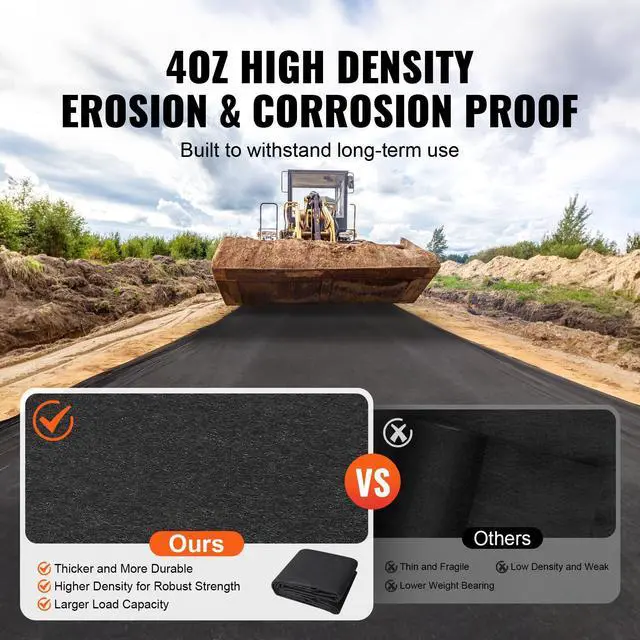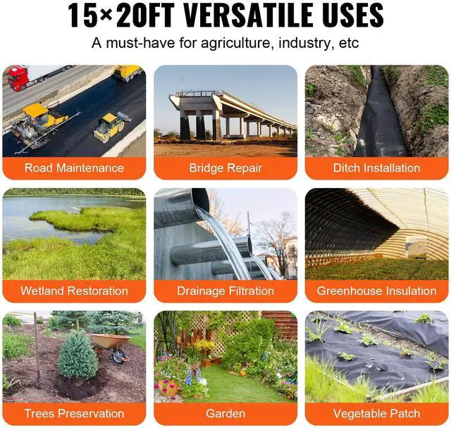 VEVOR Driveway Fabric, 15x20FT Non Woven Geotextile Fabric for Landscaping, Heavy Duty Garden Weed Barrier Fabric, 4OZ Landscape Fabric, French Drains Drainage Fabric, Ground Cover Weed Control Fabric, High Permeability, Durable and Long-Lasting, Easy Installation, Versatile Applications, Tear-resistant Non-Woven Fabric, Thrive Your Plants,