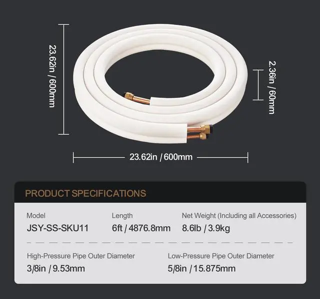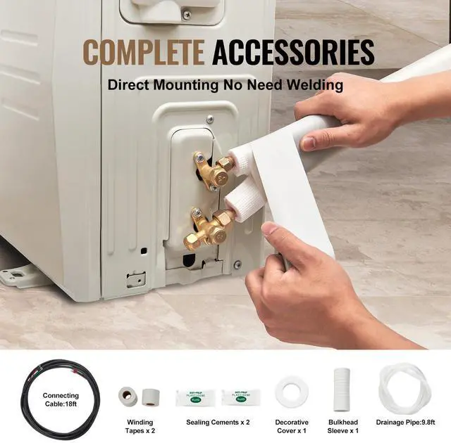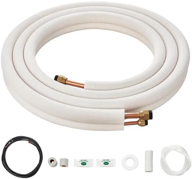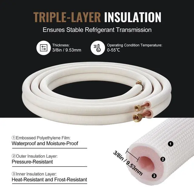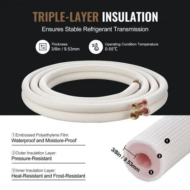 VEVOR 16FT Mini Split Line Set, 3/8" & 5/8" O. D Copper Pipes Tubing and Triple-Layer Insulation, for Air Conditioning or Heating Pump Equipment & HVAC with Rich Accessories (18ft Connection Cable), High Flexibility, One Pipe For Multiple Uses, Stringent Material Quality Control, Unquestionable Thermal Insulation, Simple Installation, Long Lifespan, Overall Dimensions (L x W x