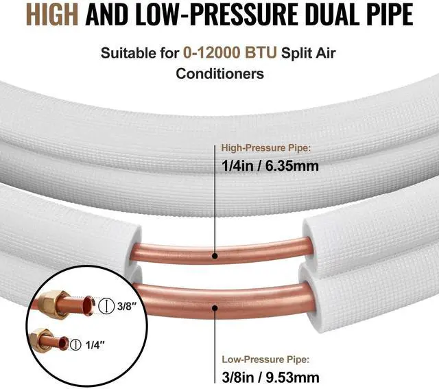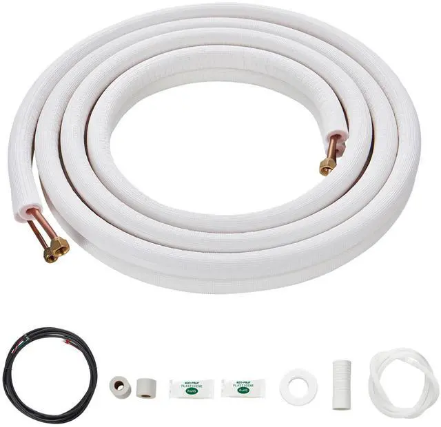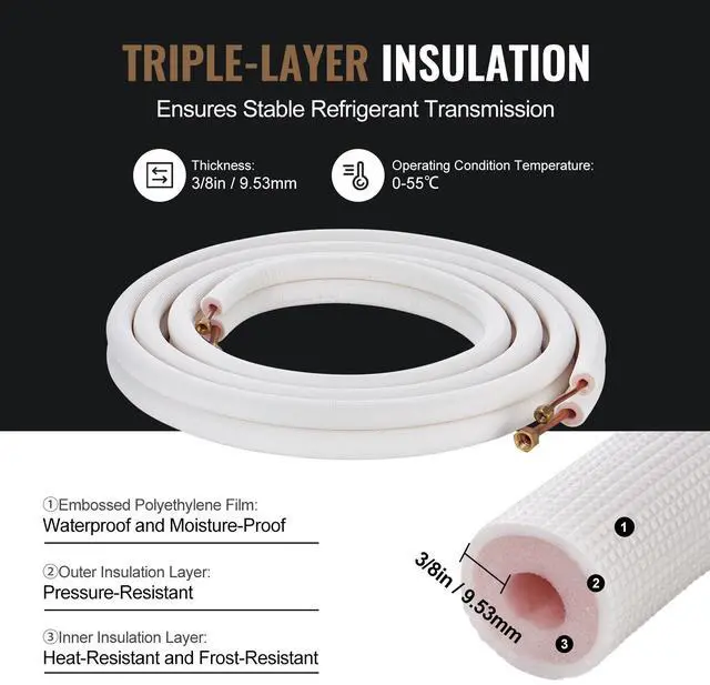 VEVOR 16FT Mini Split Line Set, 1/4" & 3/8" O. D Copper Pipes Tubing and Triple-Layer Insulation, for Air Conditioning or Heating Pump Equipment & HVAC with Rich Accessories (18ft Connection Cable), High Flexibility, One Pipe For Multiple Uses, Stringent Material Quality Control, Unquestionable Thermal Insulation, Simple Installation, Long Lifespan, Overall Dimensions (L x W x