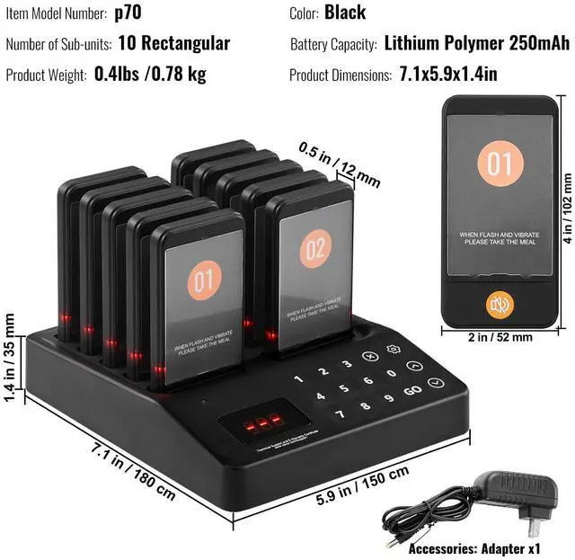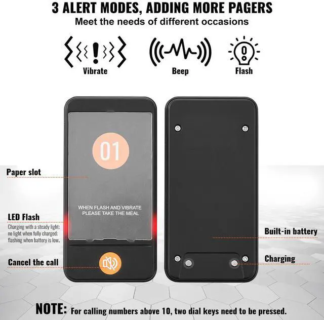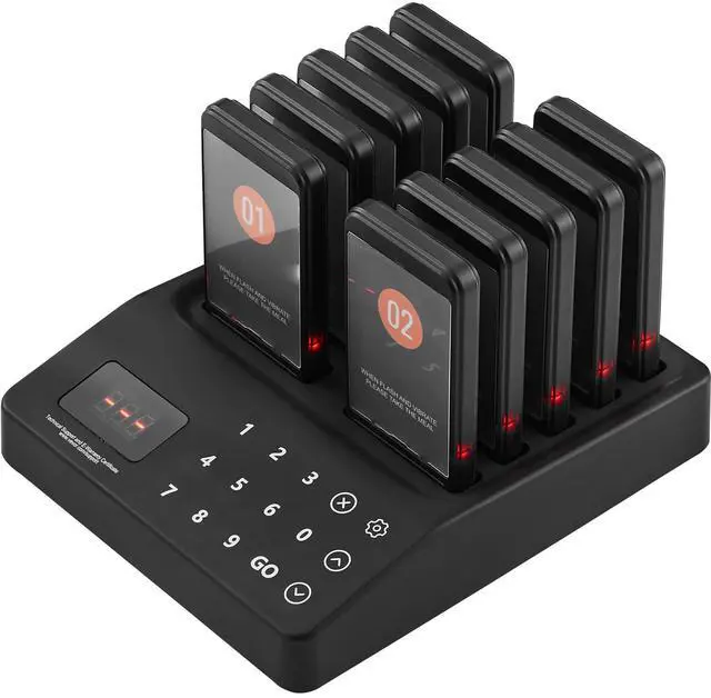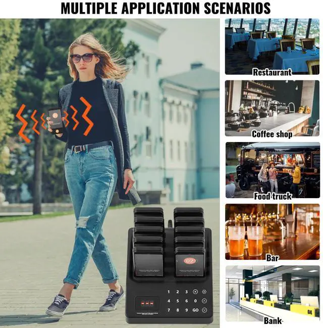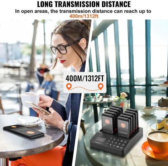 VEVOR Restaurant Pager System, Wireless 400m Long Range Lineup Waiting Queue Signal, Guest Customer Calling Beepers with Vibration & Flashing, 10 Buzzers for Food Truck, Church, Nursery, Hospital, Outstanding Performance, Long Usage Time, User-Friendly Settings, Wide Coverage, Turn On/Off, Multi-Scene