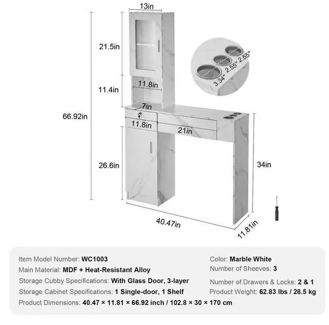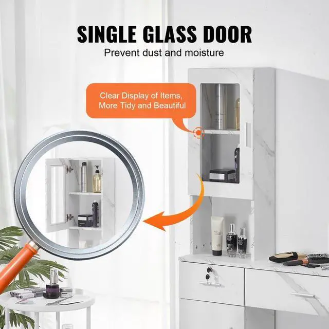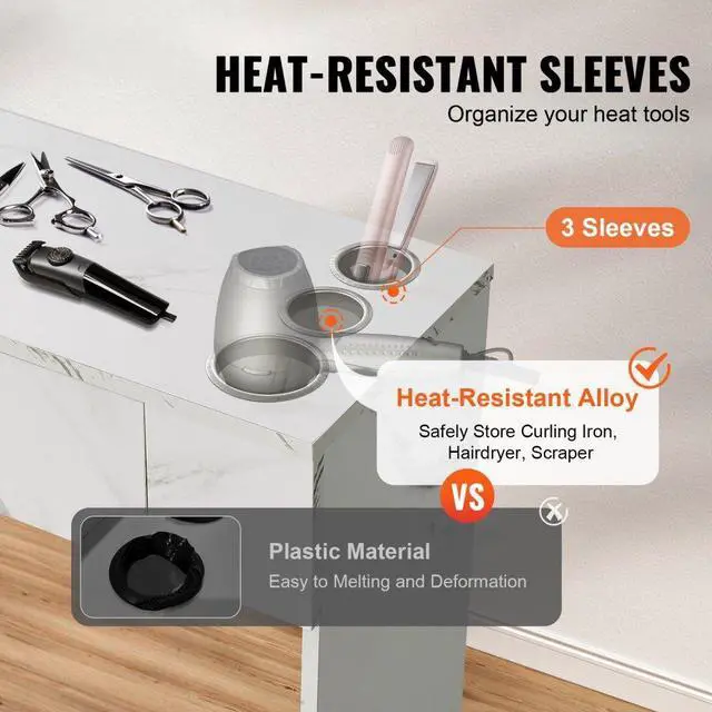 VEVOR Salon Workstation, Wall-Mounted Unit for Hair Professionals, Spa Styling Storage Solution, Includes 1 Cabinet, 3 Shelves, 2 Drawers (1 with Lock), in White, Matte Finish, Lockable Drawers, Heat-Resistant Tool Sleeves, Versatile Usage, Easy Assembly, Versatile Hair Stylist Station,