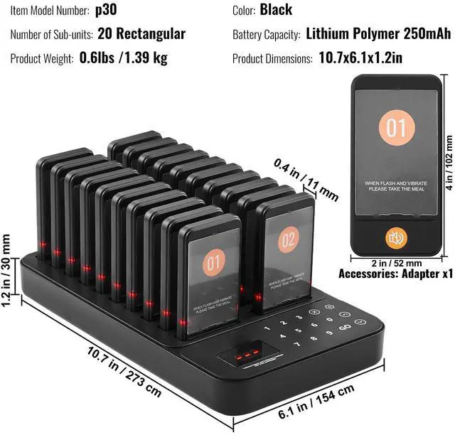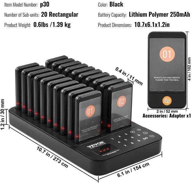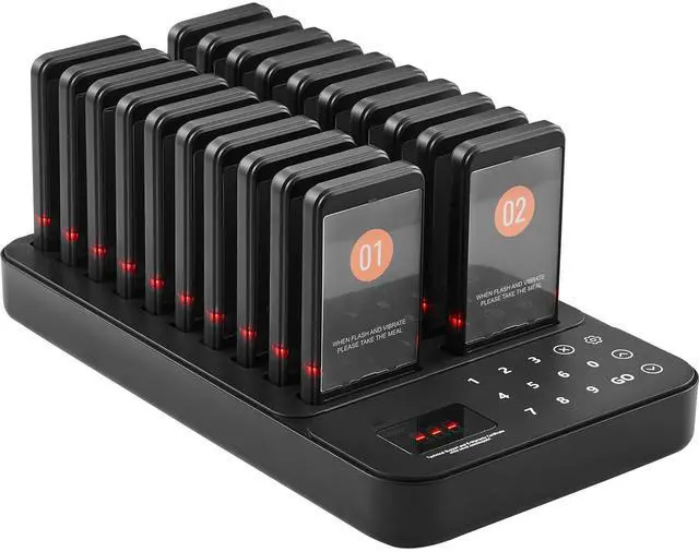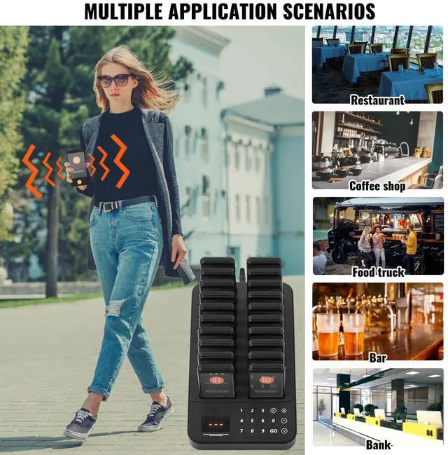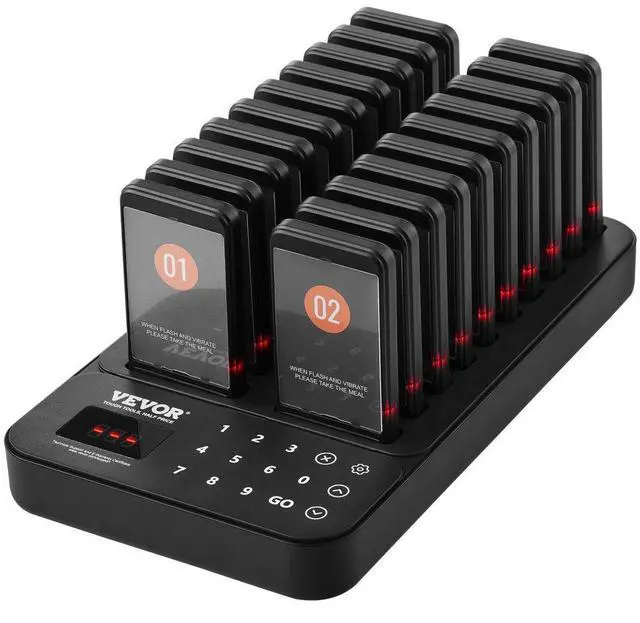 VEVOR Restaurant Pager System, Wireless 400m Long Range Lineup Waiting Queue Signal, Guest Customer Calling Beepers with Vibration & Flashing, 20 Buzzers for Food Truck, Church, Nursery, Hospital, Outstanding Performance, Long Usage Time, User-Friendly Settings, Wide Coverage, Turn On/Off, Multi-Scene