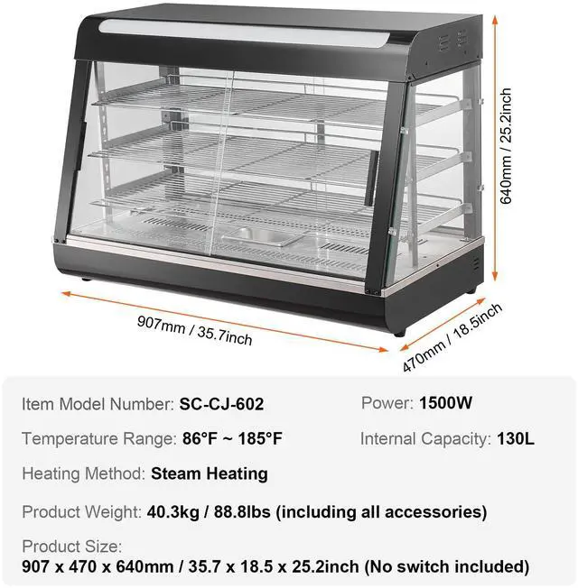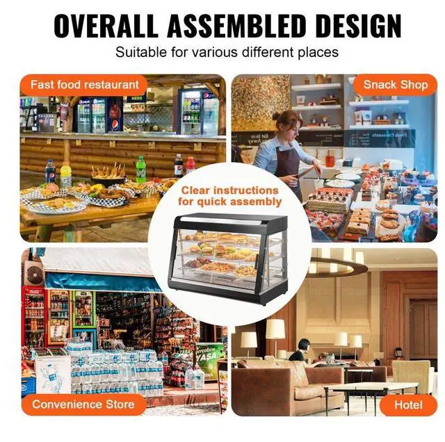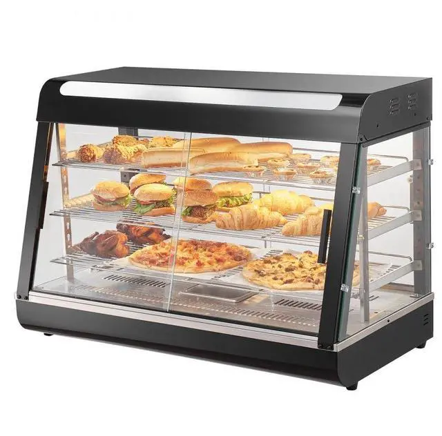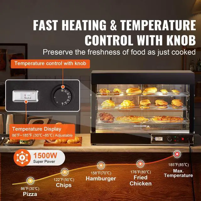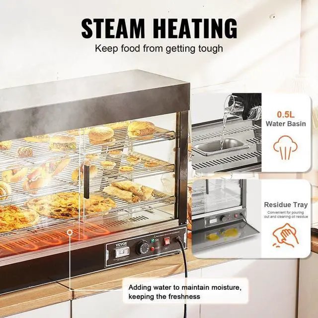 VEVOR 3-Tier Commercial Food Warmer Display Countertop Pizza Cabinet with Light, Temperature Control, 3-Tier Large Space, Heat Retention, Premium Material, Even Heating, Warm Reminder, Internal