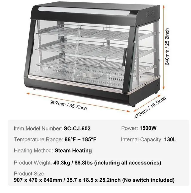 Product Size: 35.71 x 18.50 x 25.20 inch / 907 x 470 x 640 mm (No switch included)