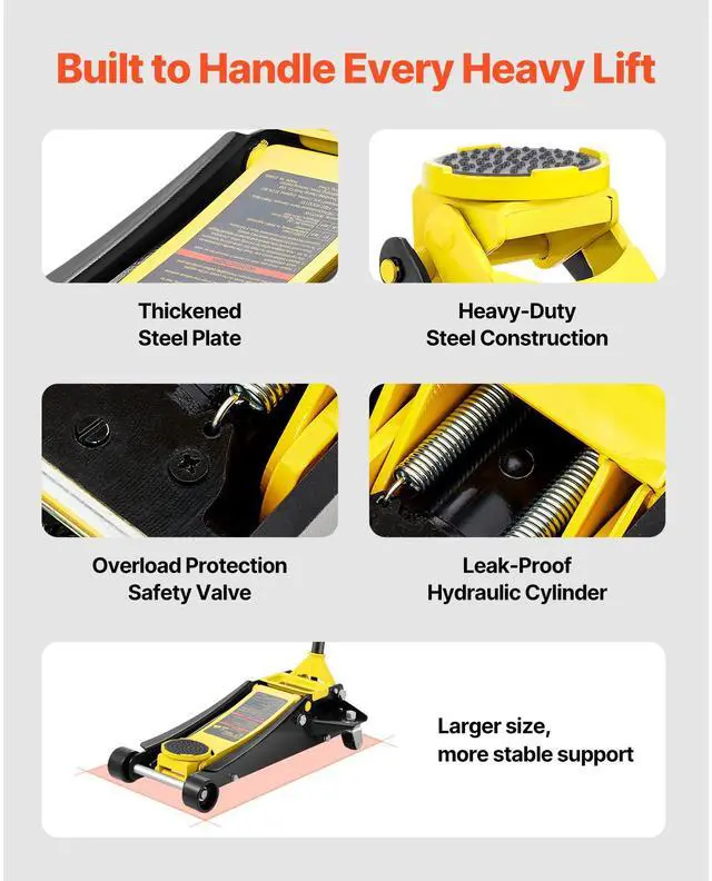 VEVOR Low Profile Floor Jack 2.5 Ton Heavy Duty Steel Dual Piston Rapid Pump, Powerful Capacity, Built to Last, Easy to Operate, No More Damage to Vehicles, Reliable Sealing, Smooth-Rolling, Magnetic Tool Tray,