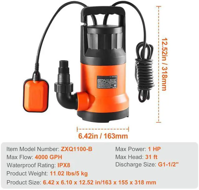 VEVOR Submersible Utility Pump Sump Pump 1 HP 4000 GPH 31 ft Head Water Pump, Efficient Drainage, Quality You Can Trust, Easy Compatibility, User-Friendly Design, Versatile Application, IPX8 Waterproof