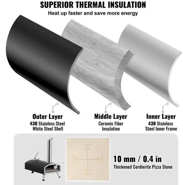 VEVOR 12" Outdoor Pizza Oven Portable Wood Pellet Pizza Oven Iron Spray Camping, 12" Outdoor Pizza Oven, Quick Enjoyment, Easy Storage, Versatile, Portable Convenience, Adjustable Chimney Cap, Capacity: 12 inch, Max