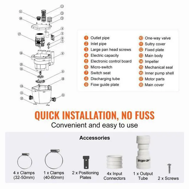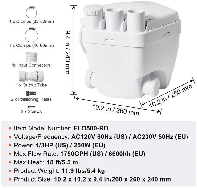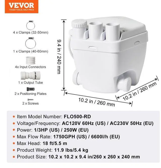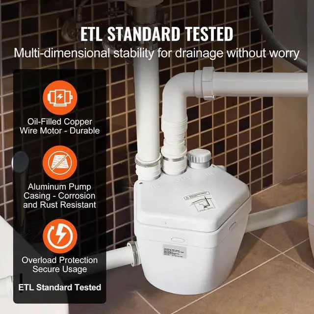 VEVOR Utility Sink Pump Laundry Sink Drain Pump System 1/3 HP 1500 GPH 18ft Head, Hot and Cold Ready, Precision Control, Integrated Waterproofing, Fully Automatic Operation, Versatile Application, Extended Power Cord, Voltage/Frequency: AC120V/60Hz,