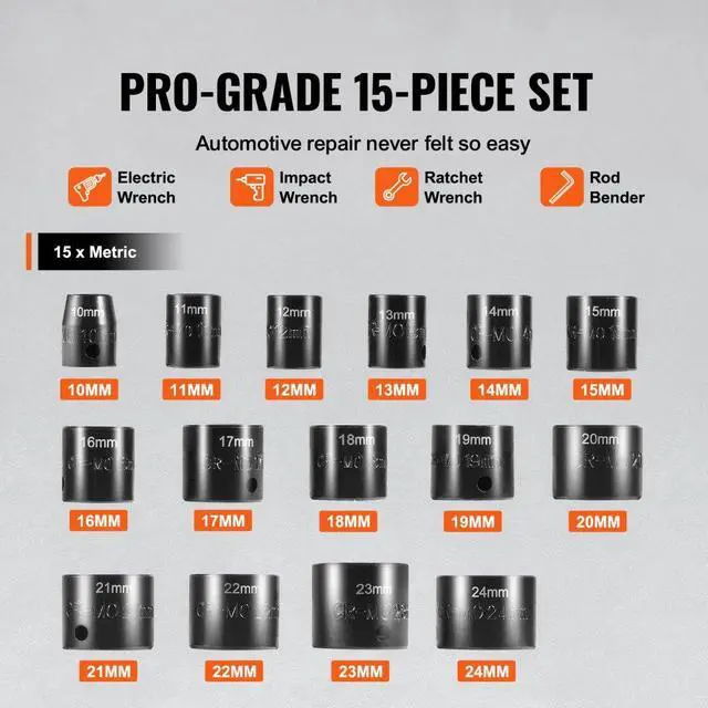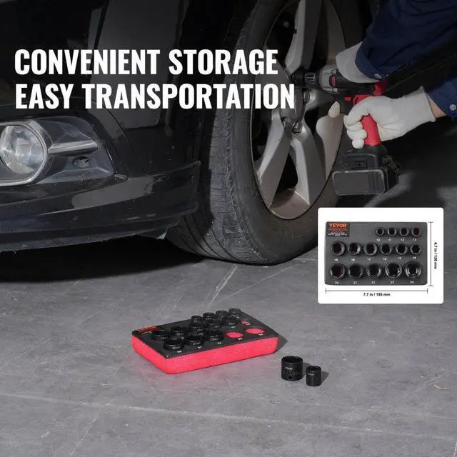VEVOR Impact Sockets Set 15pcs 6-Point 3/8" Drive Bit Ratchet Tool Kit Case, Rugged and Durable, Complete