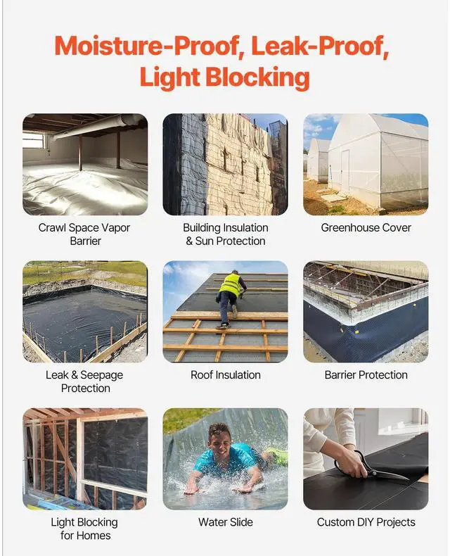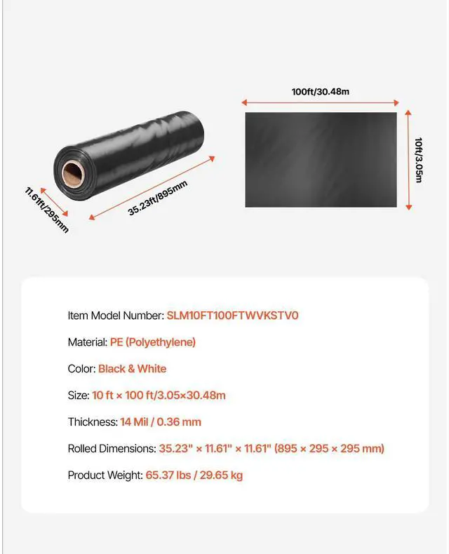 VEVOR 14 Mil Plastic Sheeting Heavy Duty 10' x 100', Thick Plastic Sheeting Roll, Plastic Drop Cloth Painters Tarp Covering for Crawl Space Vapor Barrier, Black and White Double-Sided, Multi-Purpose, Large Size Design, Sturdy and Durable, Superior Weather Resistance, High-Performance Protection, Wide Applications, Premium