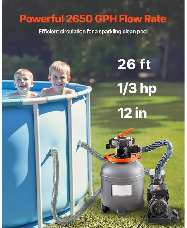 12 in Sand Filter Pump for Above Ground Swimming Pools 1/3 HP 2650 GPH Flow Rate, Effective Filtration, Hassle-Free Maintenance, Easy Operation, Wide Application, Complete Accessory Kit, High