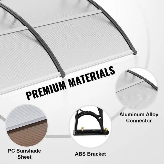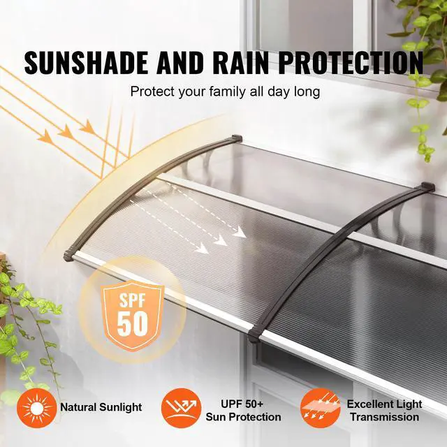 VEVOR Window Door Awning Canopy 40" x 80", UPF 50+ Polycarbonate Entry Door Outdoor Window Awning Exterior, Front Door Overhang Awning for Sun Shutter, UV, Rain, Snow Protection, Hollow Sheet