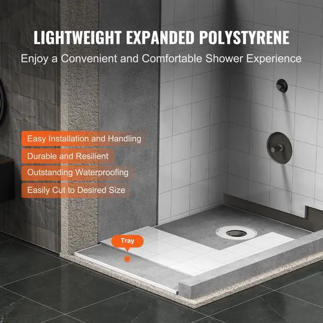 VEVOR Shower Curb Kit, 60"x38" Shower Pan Kit with 6.3" Offset Drain, Lightweight EPS Shower Installation Kits with 2 Waterproof Cloths, Shower Pan Slope Sticks Fit for Bathroom