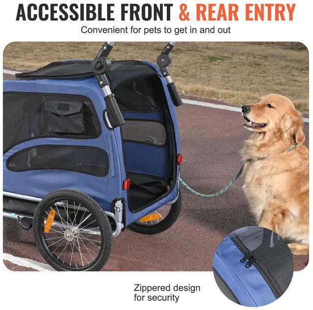 VEVOR Dog Bike Trailer, Supports up to 100 lbs, 2-in-1 Pet Stroller Cart Bicycle Carrier, Easy Folding Cart Frame with Quick Release Wheels, Universal Bicycle Coupler, Reflectors, Flag, Blue/Black
