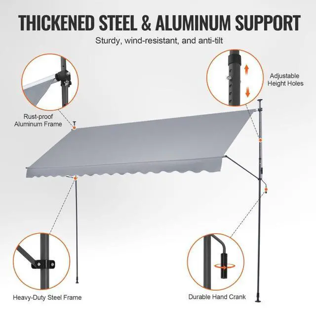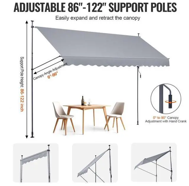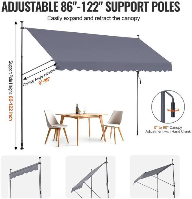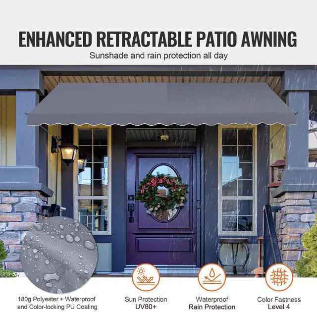 • VEVOR 157x47" Patio Awning Retractable Awning Sunshade Shelter with Crank Handle