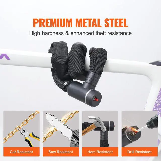 VEVOR Bike Chain Lock 2.79 Ft Combination Bicycle Chain Lock with 2 Keys 8mm