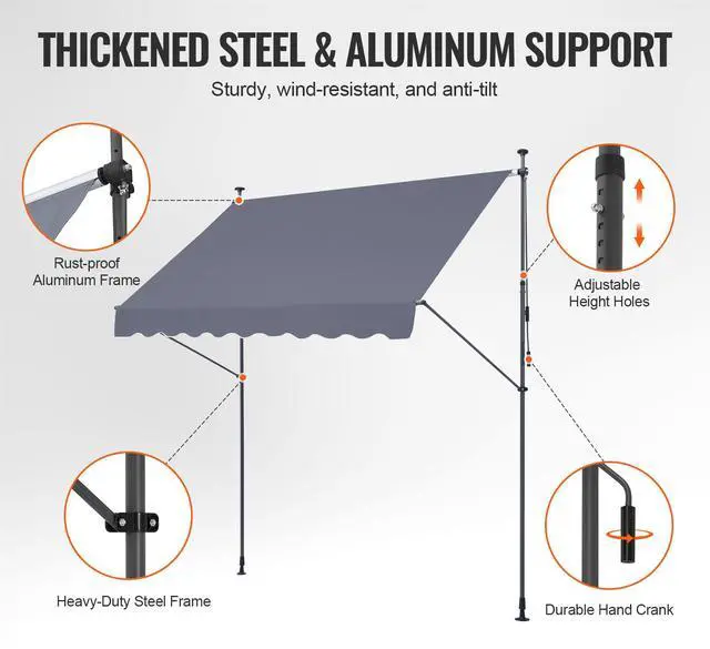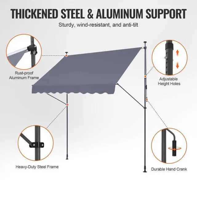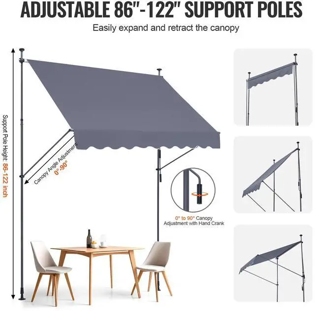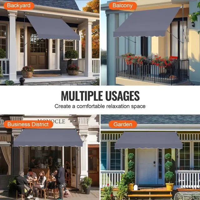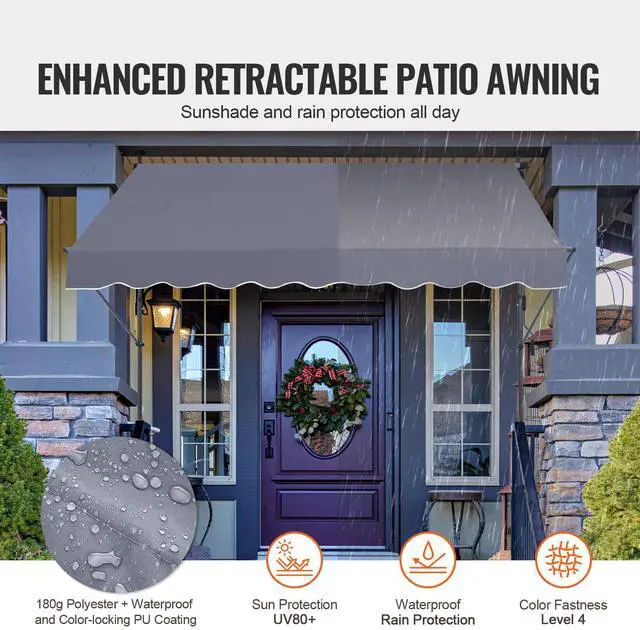 • VEVOR 98x47" Patio Awning Retractable Awning Sunshade Shelter with Crank Handle